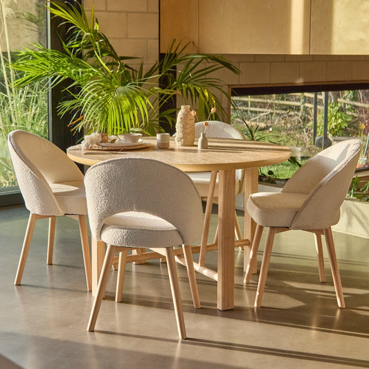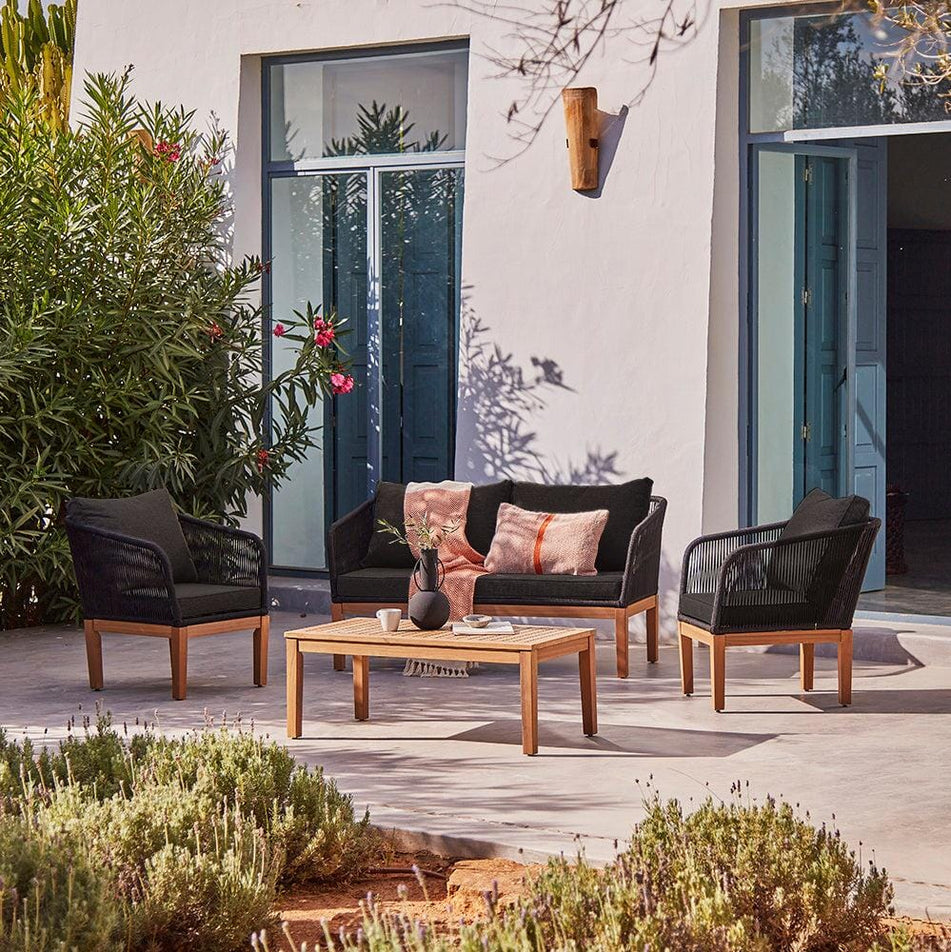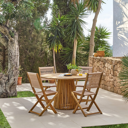 Free Furniture CoverEzra 4 Seater Round Wooden Garden Dining Set with 4 Hali Black Rope Chairs