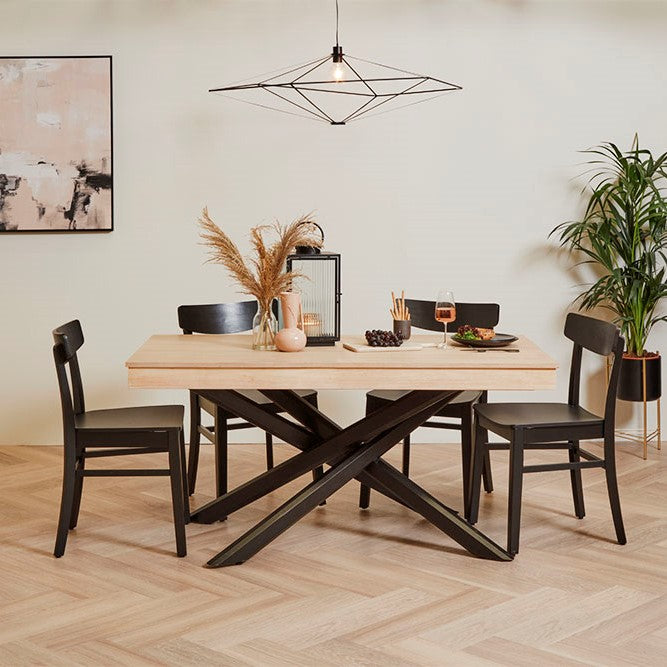 Amelia Black Extending Dining Table Set - 6 Seater - Marilyn Burgundy Red Dining Chairs - Black Legs