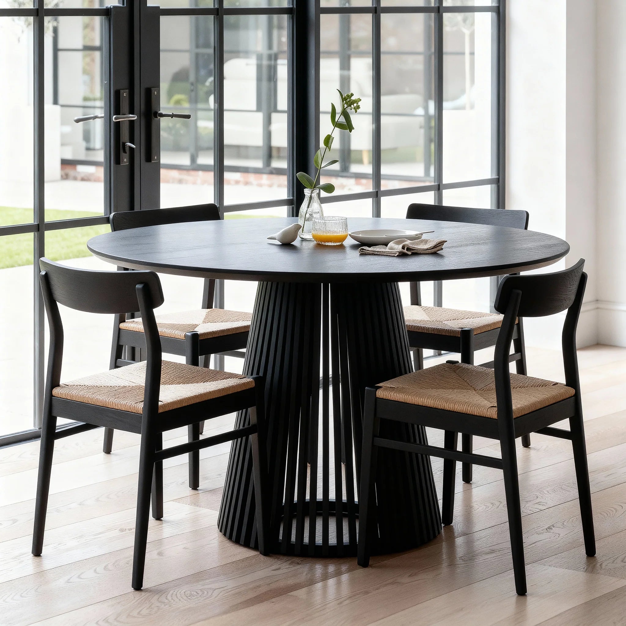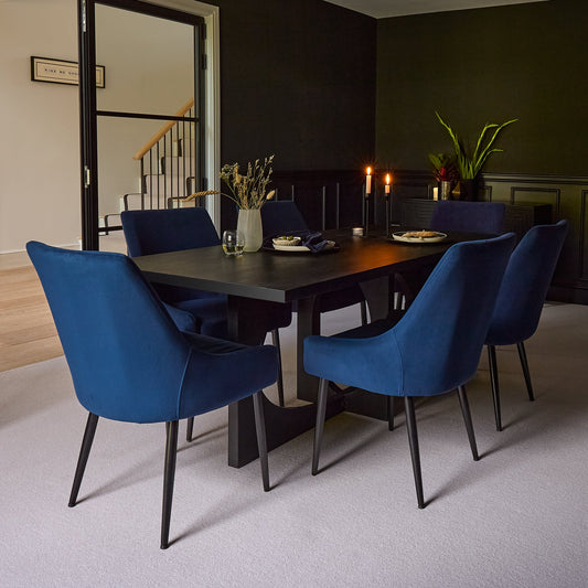 Amelia Black Oak Oval Extending Dining Table Set - 6 Seater - Carter Black Oak Dining Armchairs
