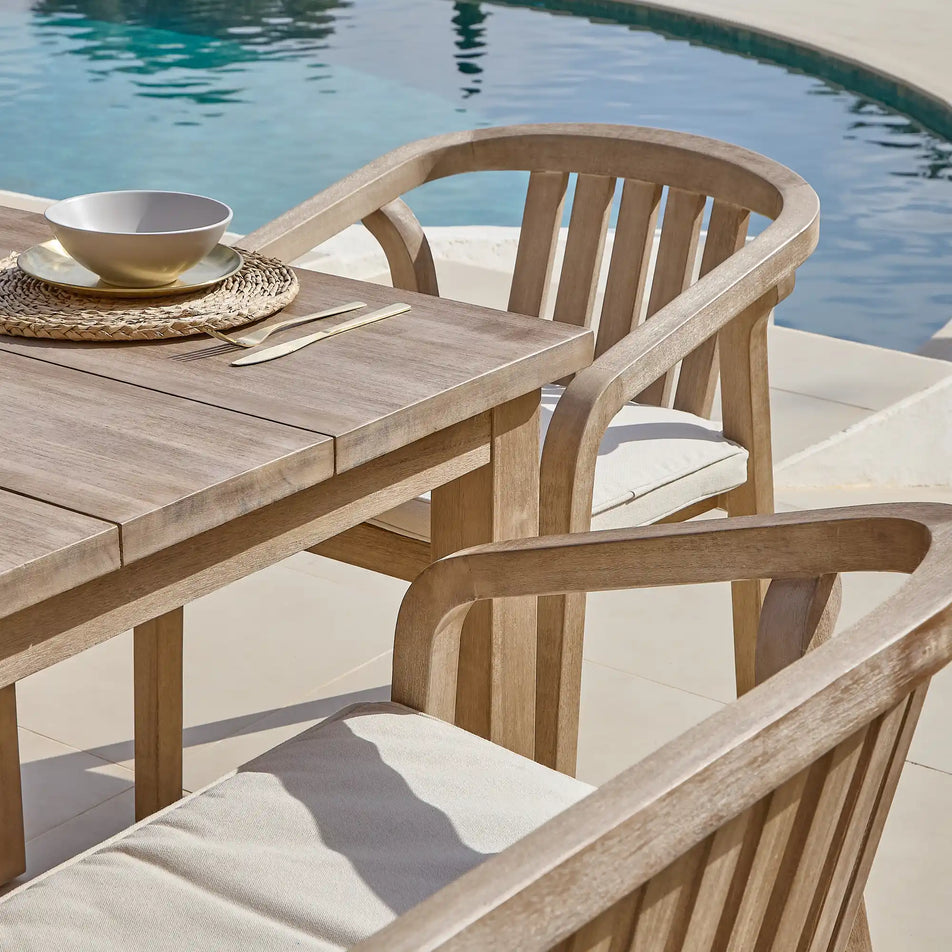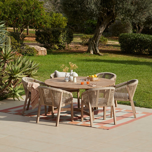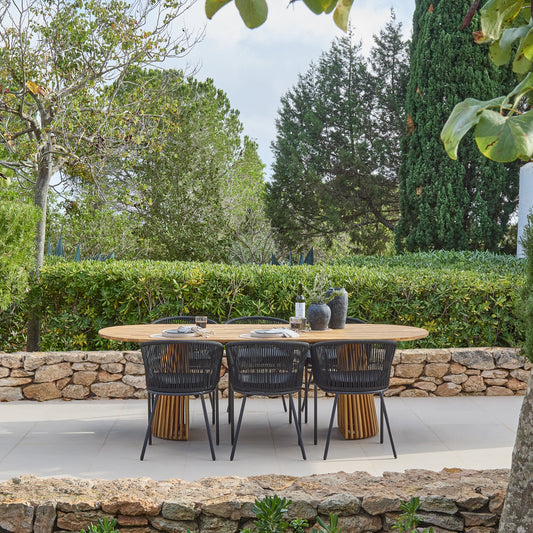 Ezra 6 Seater Oval Wooden Garden Dining Set with 6 Hali Natural Rope Chairs