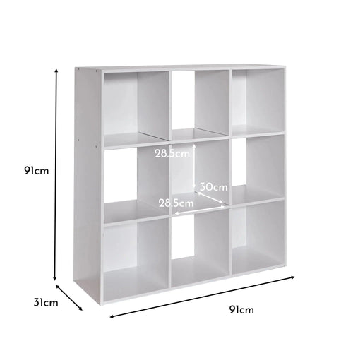 This cube storage unit will keep your home organised, as well as stylish. With a white finish, this bookcase is easy to style in any room and matches with a variety of décor. Featuring 9 shelving cubes, this storage solution has plenty of space to keep belongings organised. As well as giving space to showcase your favourite ornaments.