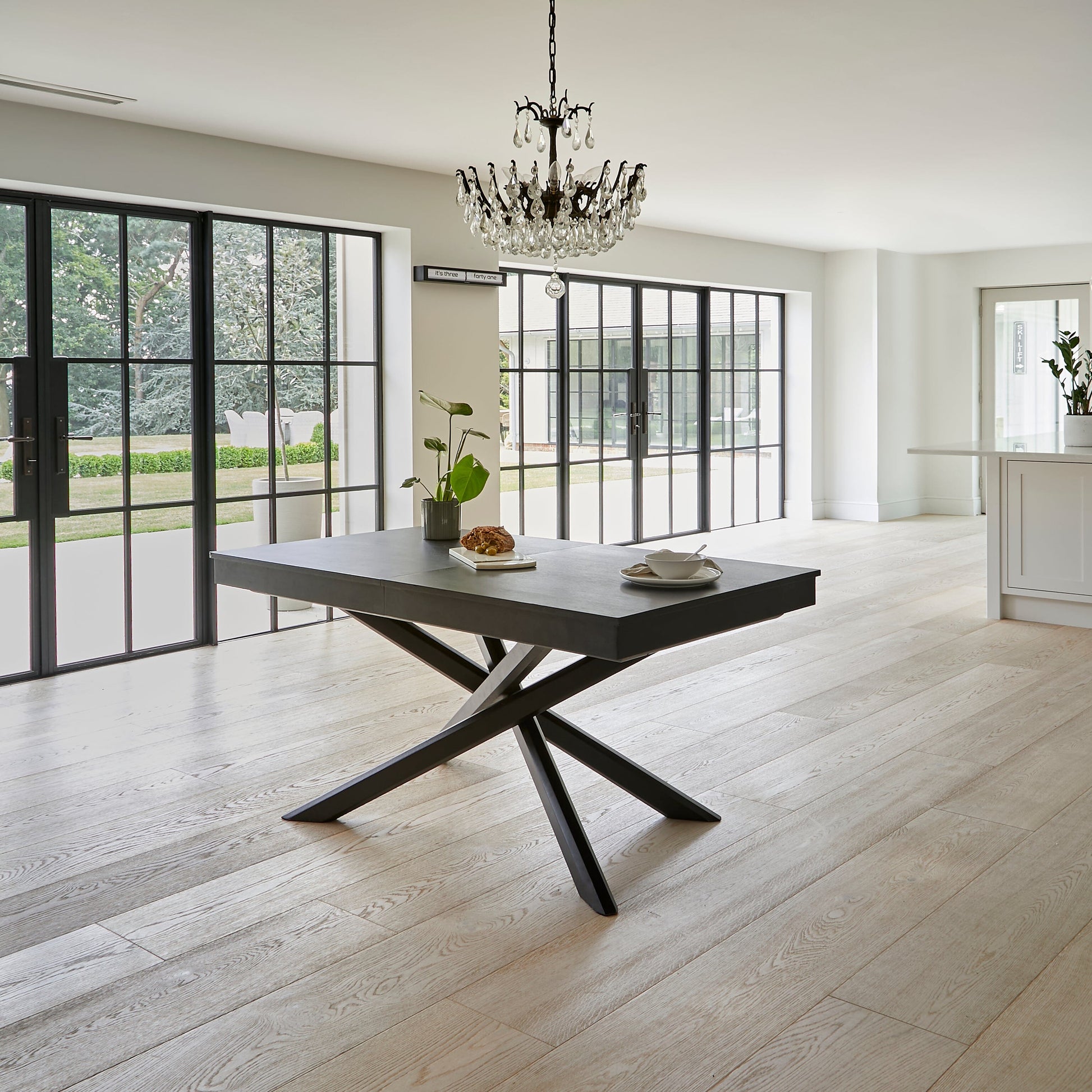 The Amelia solid black wood extendable dining table is the perfect choice for contemporary-inspired décor. In a bold black finish with an intricate solid leg structure, the Amelia dining table is sure to add the wow factor to your living and dining space.