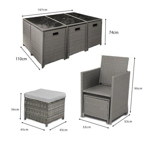 10 Seater Rattan Cube Outdoor Dining Set with Parasol - Grey Weave - Laura James