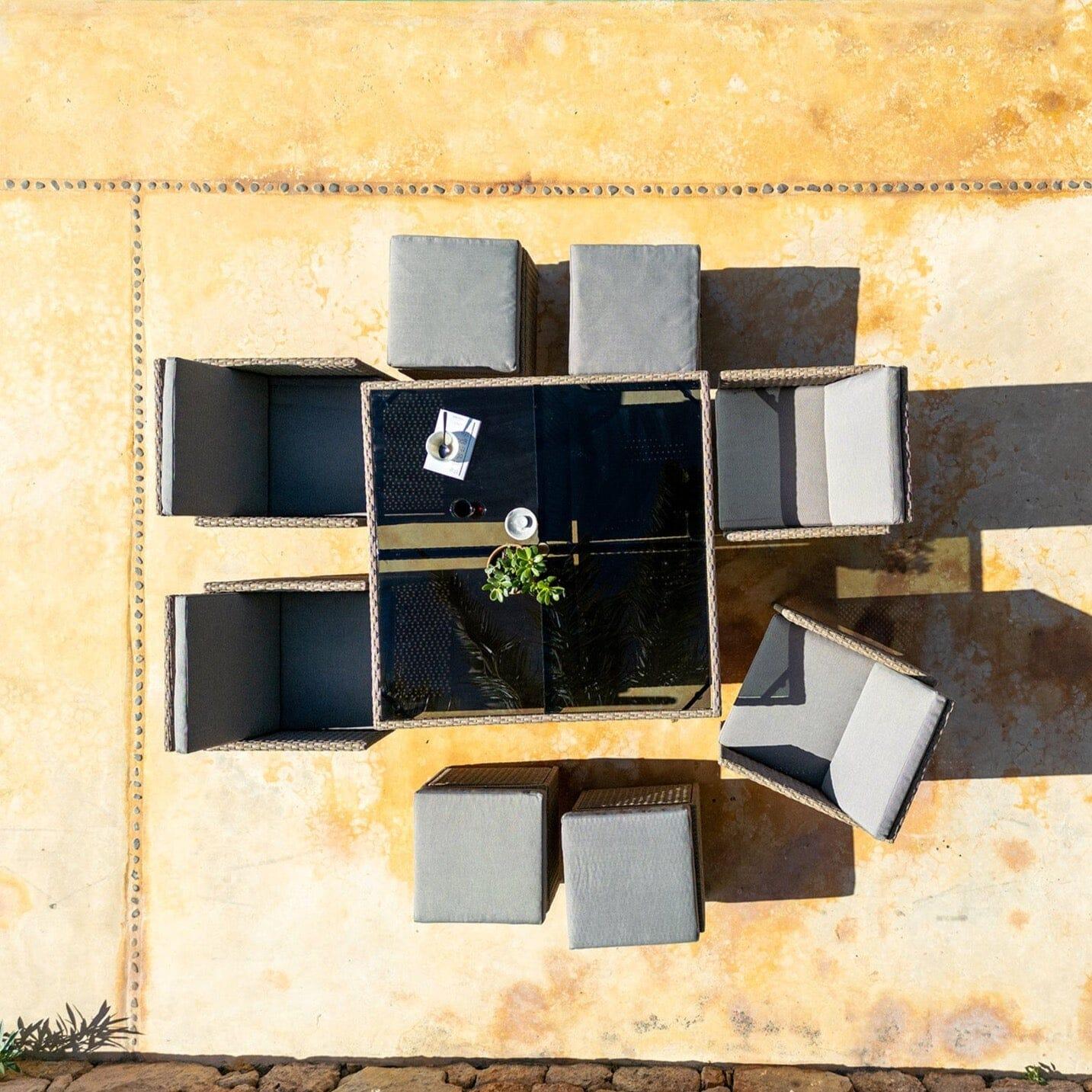 8 Seater Rattan Cube Outdoor Dining Set - Brown Weave Glass Top - Laura James