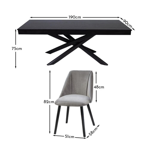 Amelia Black Dining Table Set - 6 Seater - Freya Grey Dining Chairs - Black Legs