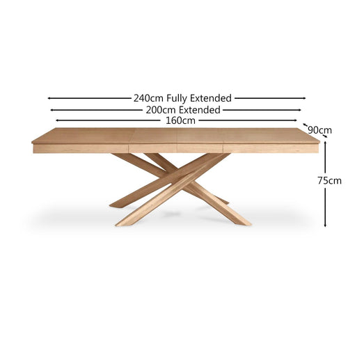 - Design features – Rectangular table in pale oak with intricate sculptural leg design and extending function.