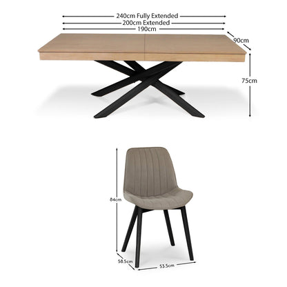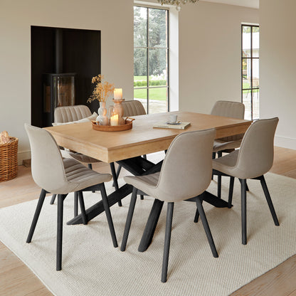 Whitewash Extendable Dining Table Set - 6 Seater - Bella Soft Beige Dining Chairs - Black Legs