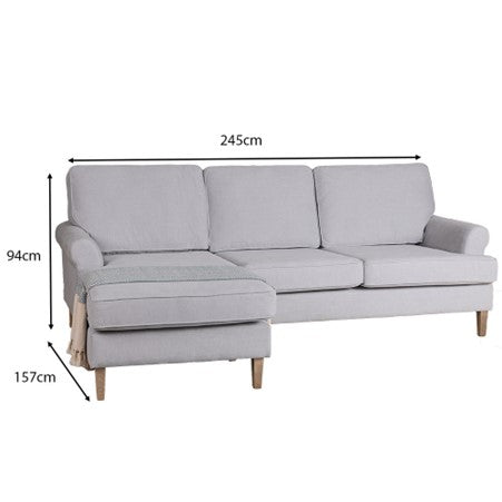 Annabelle Chaise Corner Sofa - Cloud Grey with Pale Oak Legs