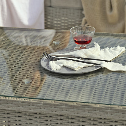 Rattan Corner Sofa - 5 Seater - Grey - Raised Dining Coffee Table