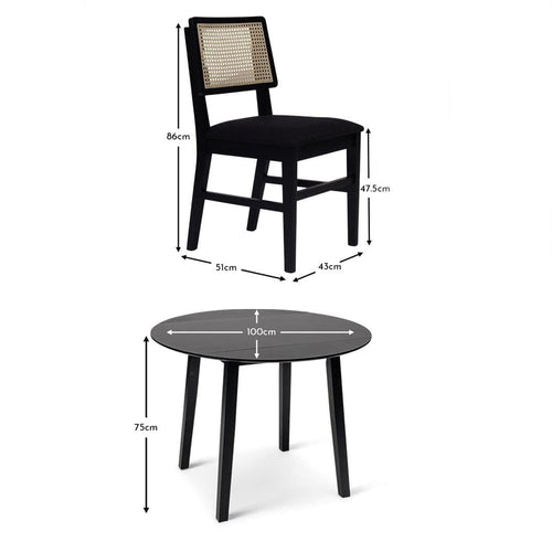 Black Dining Table Set - Round Drop Leaf - 4 Seater - Charlie Dining Chairs