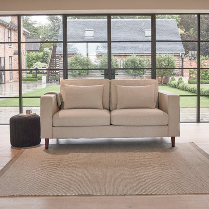 The beloved Emily Sofa now comes in new colours and finishes for 2024. The Sand 2-seater sofa consists of high-quality upholstery in a speckled weave finish, complete with pale oak effect legs. This small sofa also includes two versatile cushions for an elevated aesthetic. Match with the Emily 3-seater sofa to create your dream living room.