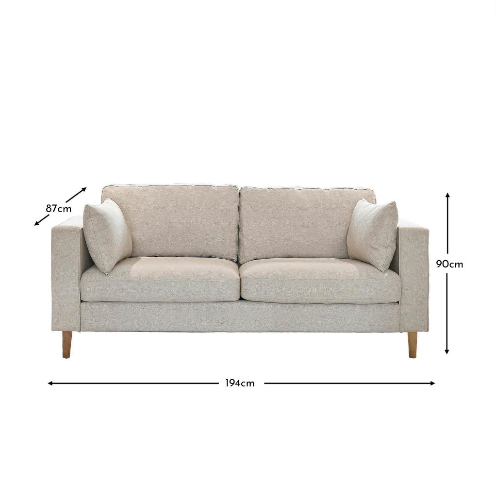 Get cosy with the Emily 3-Seater Sofa, your ultimate snuggle buddy for movie nights. With high-quality upholstery in sand with speckled weave finish and pale oak legs, this modern sofa is made with comfort in mind. Pair with the Emily 2-seater sofa to form your dream living room.