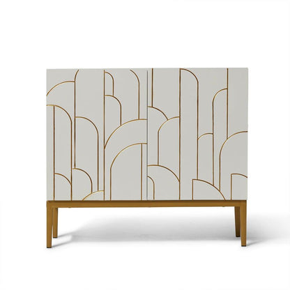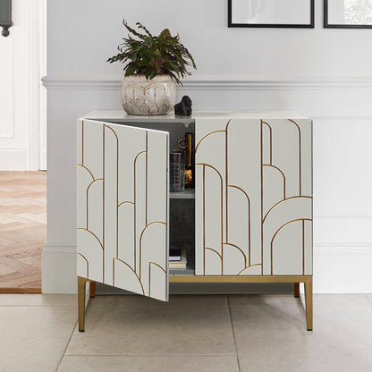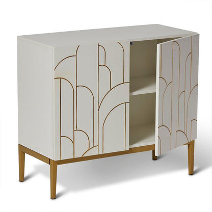 This eye-catching white 2-door sideboard adds a new lease of life to any room in your home. Its Art Deco inspired gold design creates interest and appeal, becoming the ultimate furniture piece for both storage and decoration.