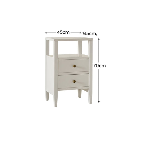 Ivy 2 Drawer Bedside Table - Ivory White