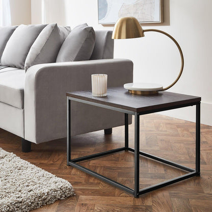 Urbanize your living room with the Jay side table in black and walnut effect. This modern design is perfect for bringing functionality and trend into your space. Boasting a realistic walnut effect top and black steel frame, this side table is both practical and stylish.