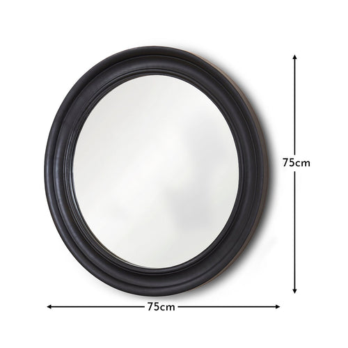 The Langton round mirror features a black moulded frame. The classic circular shape and refined profile details provide a sleek touch that complements both modern and traditional interiors. Perfect for hanging in an hallway, above a sideboard, or as a statement piece in any room.