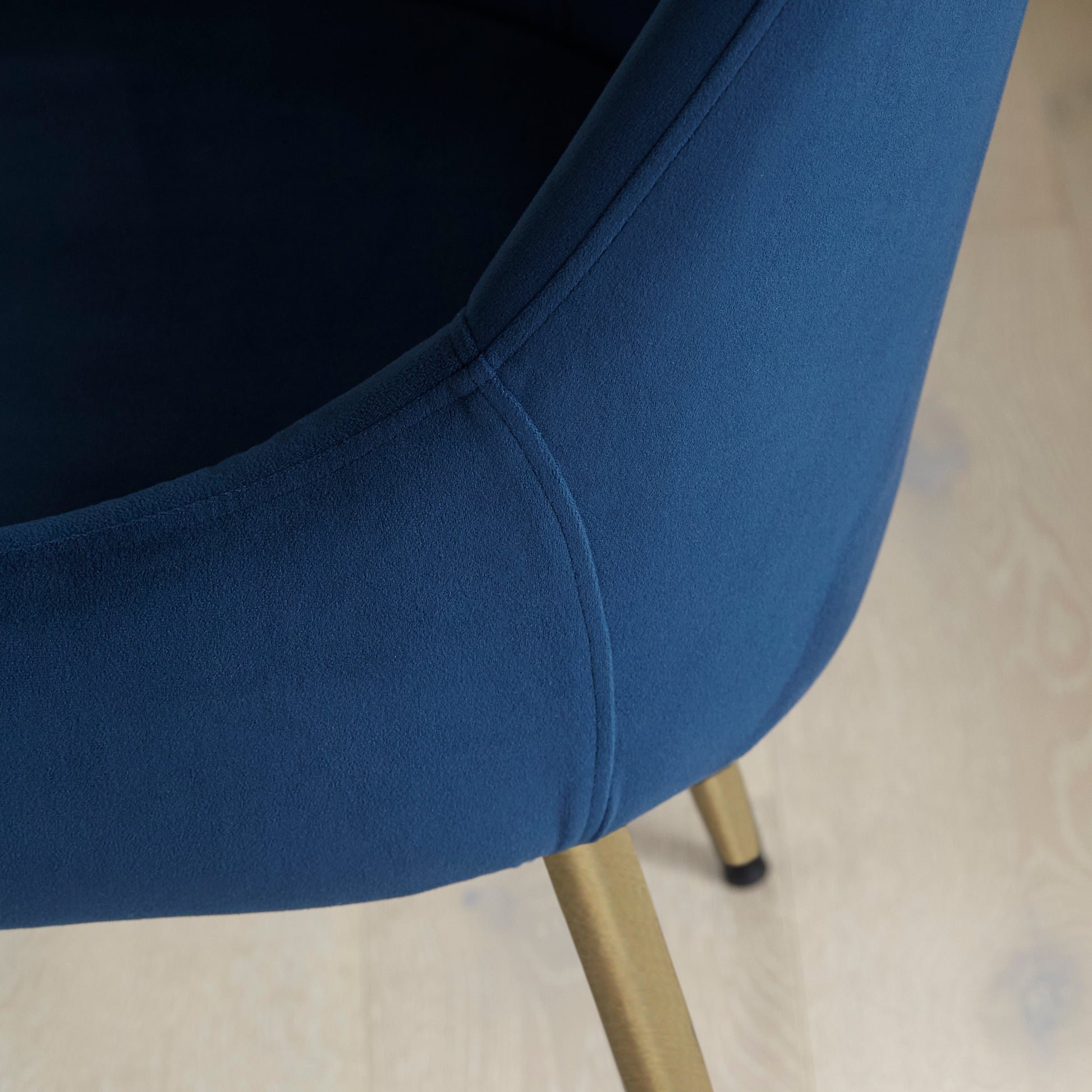 With its generously sized padded seat and high-quality, soft-touch fabric, the Maeve Ink and gold dining chair provides luxurious comfort and sophisticated elegance for any type of dining space.
