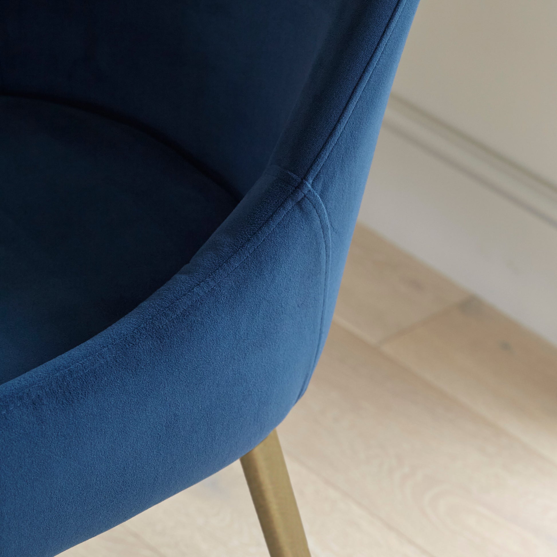 With a new and improved design for 2024, the Maeve dining chair now comes in an updated colourway. Upholstered in ink blue velvet and supported by luxe gold metal legs, this large and spacious dining chair is the perfect companion for an elegant and statement dining table.