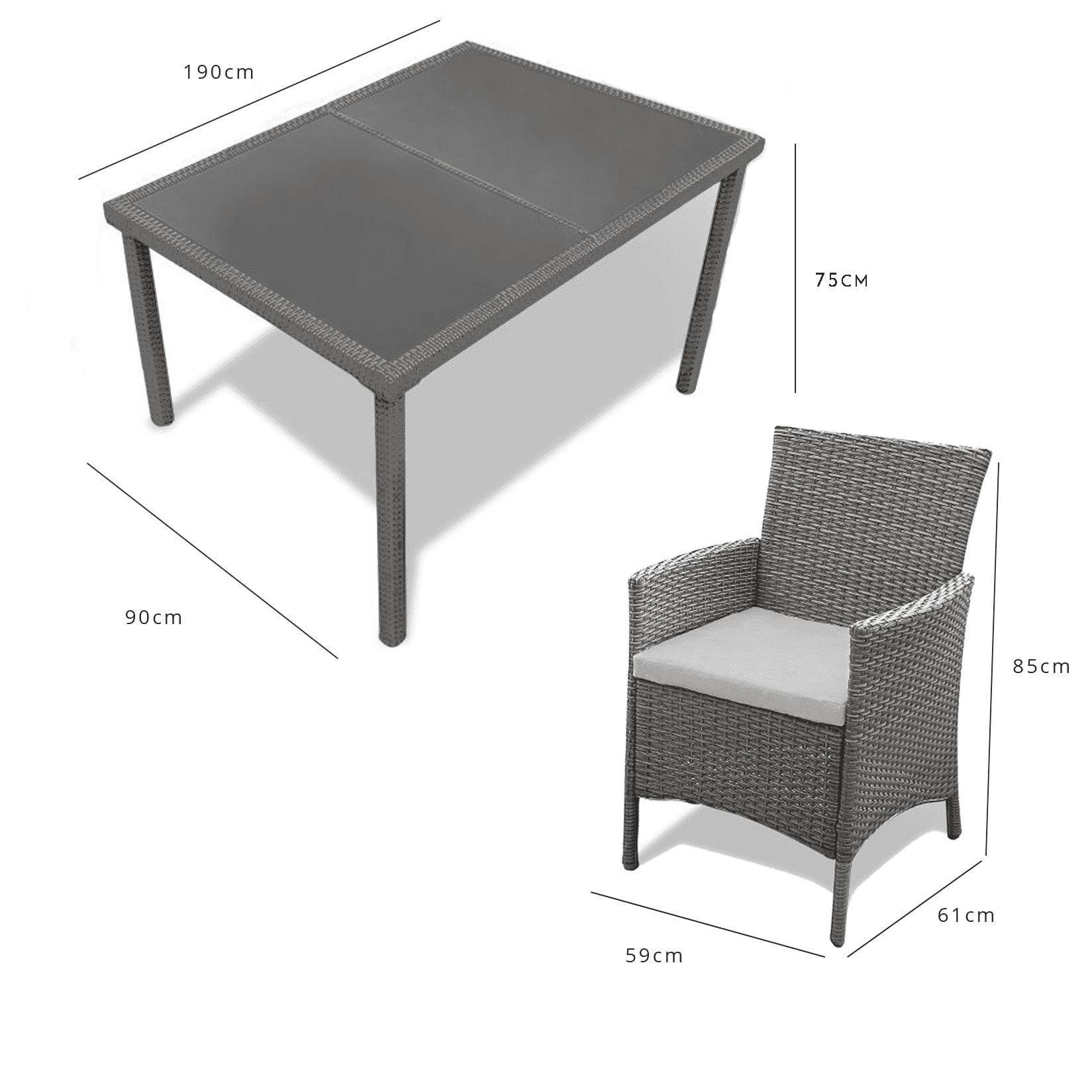 Measuring 190cm in length, 90cm in width, and 74cm in height, the Marston 8 Seat Polywood Top Rattan Dining Set in sleek grey perfectly balances its generous proportions with modern aesthetics. The spacious table offers ample room for entertaining, while the thoughtfully designed chairs ensure both comfort and style, making it an ideal centrepiece for your outdoor gatherings.