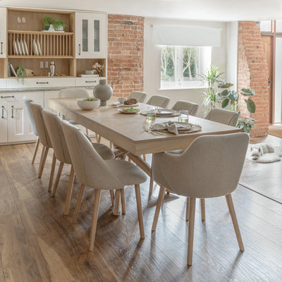 Once you've chosen a dining table, it's important to check both the table’s measurements and the dimensions of your room. A helpful way to do this is by marking the table's footprint on your floor using masking tape, giving you a clear idea of how much space it will occupy. Remember to allow extra room for dining chairs and enough space to move comfortably around the table. If you're considering an extendable table, be sure to check its full extended size to ensure it fits your space.