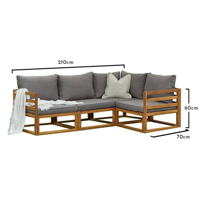4 Seater Wooden Garden Corner Sofa Set - Grey