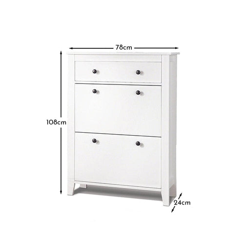This white painted wooden shoe cabinet is the perfect solution for keeping your entryway clean and tidy - and helps to keep your shoes in perfect condition. With two storage compartments and an added drawer, it has plenty of space to house your belongings.