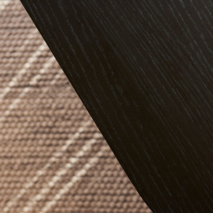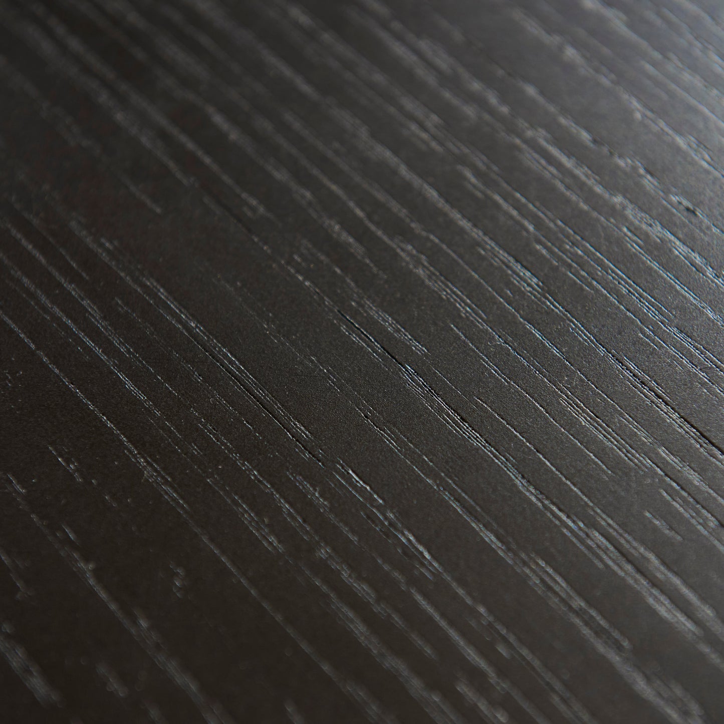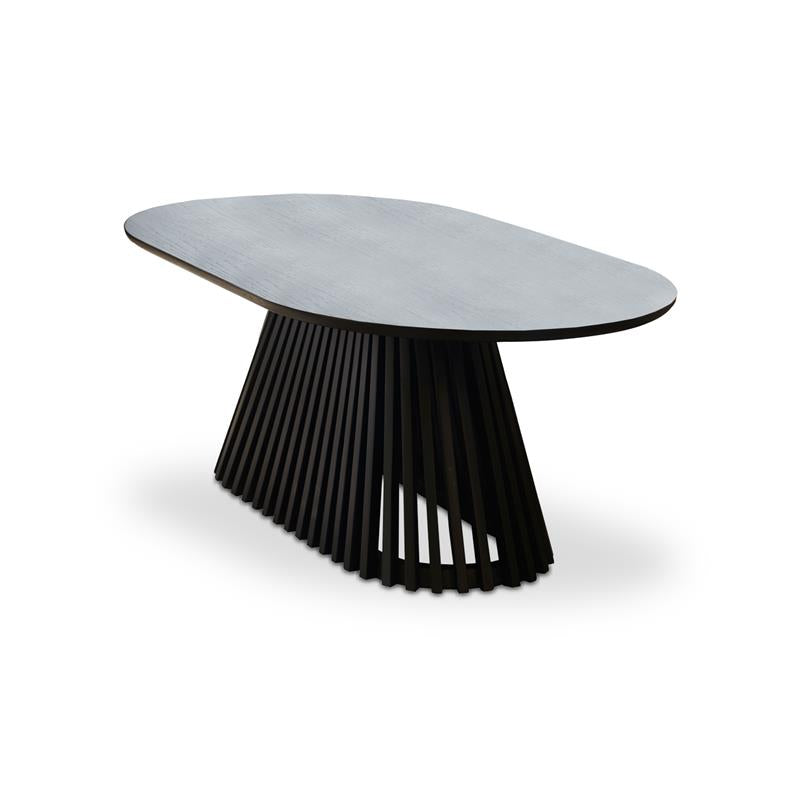 The Willow oval coffee table is a larger take on the beloved Willow round coffee table, with more space to keep living room essentials all in one place. With a curved tabletop and a sleek slatted wood pedestal base inspired by Japandi design, this spacious black oak coffee table is stylishly sleek and looks great with the Emily sofa.