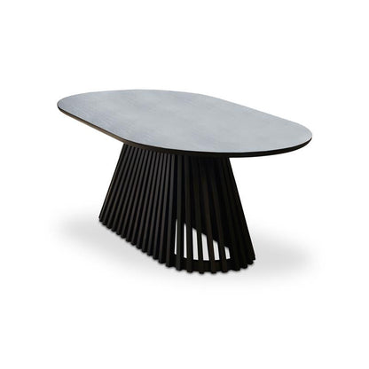 • Design features - Large oval coffee table with Japandi style pedestal base.
